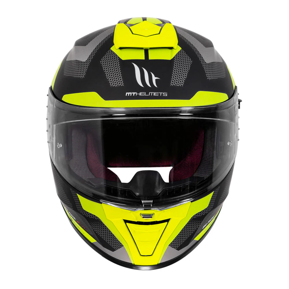 The MT Blade 2 SV Finishline Matt Fluro Yellow Helmet is a feature-loaded piece of equipment designed for riders who want professional aesthetics combined with daily practicality. The “Finishline” graphic represents the spirit of racing, while the matt fluorescent yellow colorway provides exceptional visibility on Indian roads.