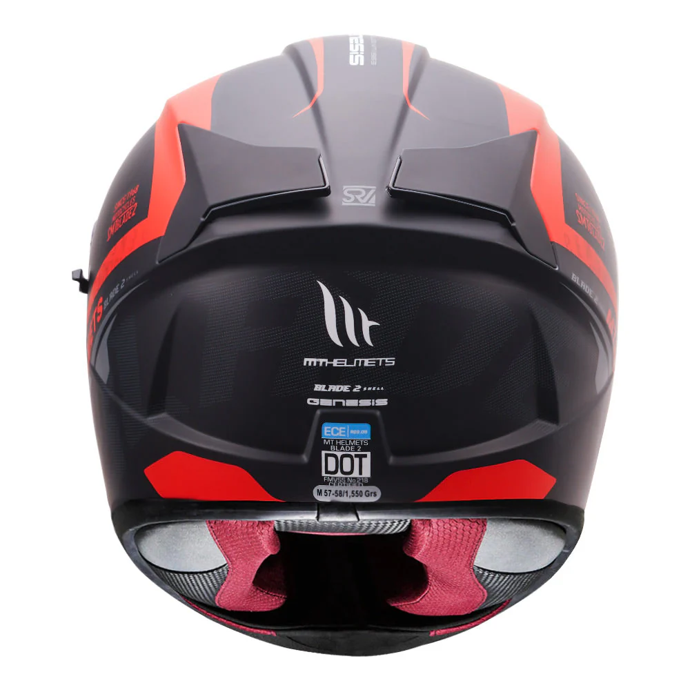 Safety is the primary mission of the MT Blade 2 SV Genesis C2 Matt Red Helmet. It carries a triple crown of global safety certifications: ISI 2015 (India), ECE R-22.05 (Europe), and DOT (US). Most notably, its SHARP 4-star rating confirms superior energy management during real-world collisions.